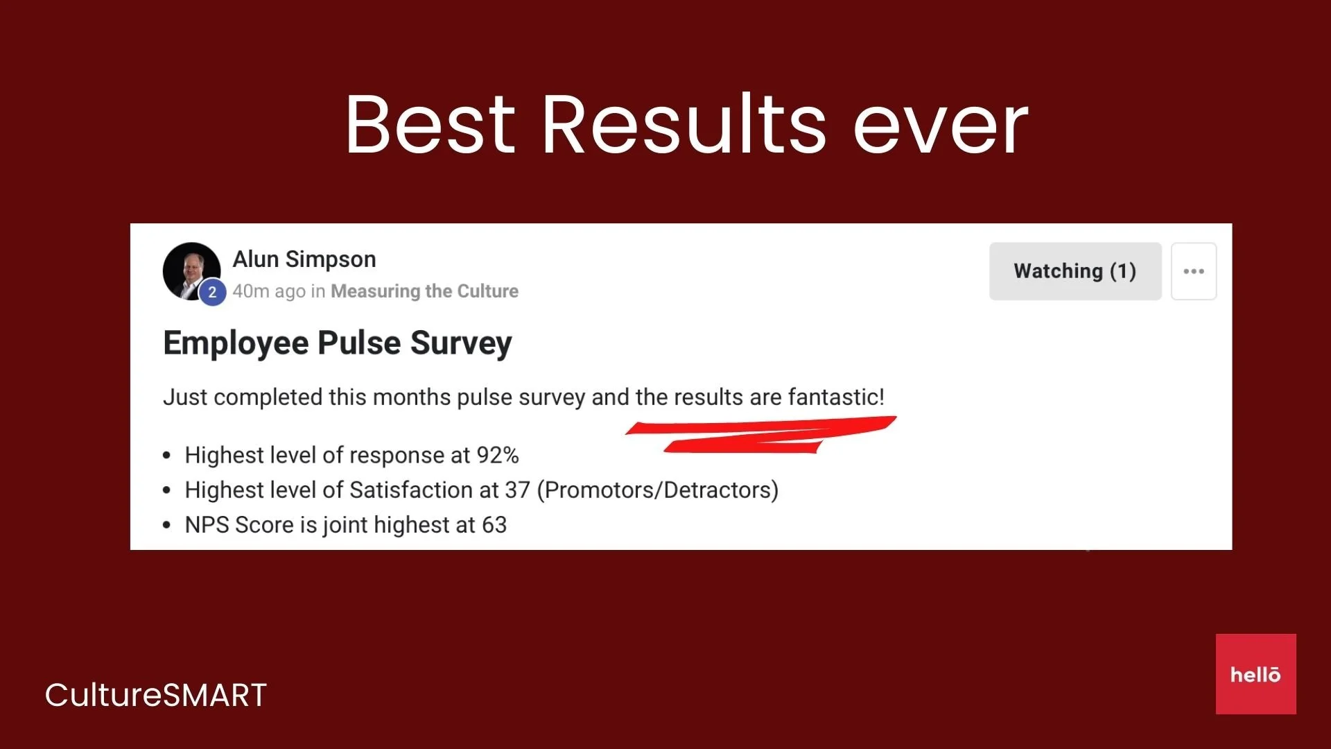 CommunityOur community is where the magic happens, this is where you can post questions, ideas, queries and hear from other culture enthusiasts. A great place to get input and where you hear how other companies do it and what best practises are out there. Imagine a group of like minded individuals who have your back. We also have yearly face to face sessions (AT NO EXTRA COST) This builds relationships and fast tracks the learning journey.